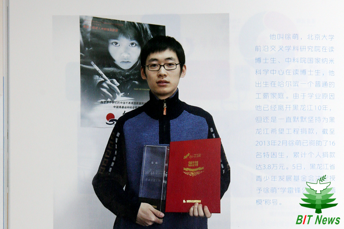 面对代表荣誉的证书和奖杯,徐萌同学表现的却是十分的平静。这个全身流淌着爱心与公益的优秀教师,有着低调做人,高调做事的优秀品质。说到获奖感言,徐萌老师害羞的笑了笑,对自己的事迹简单带过,“我曾在电视上看到过贫困学生艰难求学的感人事迹,觉得自己上了大学,如果有能力就应该帮他们一把。我一直认为,在改变别人命运的时候,其实也在改变着自己的人生。”