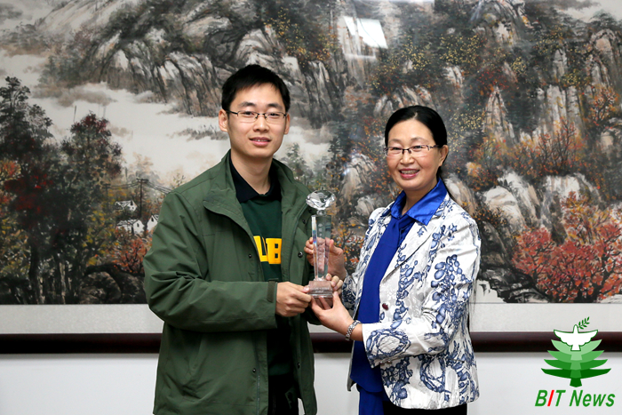 黑龙江省青少年发展基金会杨晶秘书长在颁发奖状奖杯前,更详细的为大家介绍了徐萌同志的感人的事迹。徐萌同志出生在一个普通的工薪家庭,他的捐款都是自己的奖学金。第一笔捐款被用到绥化市青冈县一中一位叫吕贺明的高中生身上,捐助的3000元对于一贫如洗的家庭仿佛雪中送炭,让原本打算辍学的吕贺明同学重新进入课堂。3年后,吕贺明以优异的成绩考入哈尔滨工业大学,选择了与徐萌同志同样的专业——“材料科学与工程专业”。这就是一种爱与精神的传递,捐资者的一份努力改变了受资助者一辈子的命运。也是这种无私奉献的精神,让杨晶秘书长不远千里来到BETWAY必威,为徐萌同志颁奖。