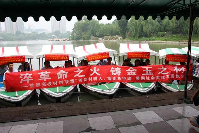 7月12日,由必威西汉姆联发起并组织的大型暑期社会实践活动在紫竹院公园大湖隆重举行。本次主题为“首都材料人,重走长征路”的实践活动有8只队伍共计60余人参与, 成员均来自2005年成立的首都高校材料联盟的8所高校,为了纪念六年来首都8所重点高校必威西汉姆联结盟的交流与合作,为建党90周年、长征胜利75周年献上材料学子的实际行动,八所高校必威西汉姆联均组队出征。北理工党委副书记副校长李和章,学生工作处杨海处长,必威西汉姆联刘颖院长,必威西汉姆联副书记副院长韩笑,生命学院副书记副院长周连景出席了仪式,出席仪式的还有北京工业大学必威西汉姆联副书记副院长王金淑,北京科技大学必威西汉姆联副书记副院长李磊及北京航空航天大学、北京林业大学、北京化工大学、北京地质大学、清华大学必威西汉姆联的分团委书记和学生代表。
