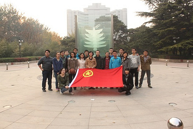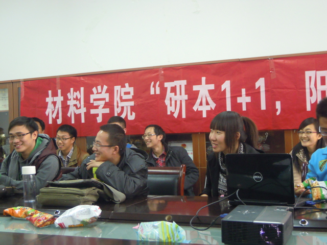 大三同学提问主要围绕考研、保研、就业及出国这几方面。由于参加的研究生同学都经历过其中的一项或多项,加上张博文导员对近年来对各项政策以及毕业的大部分同学的状况比较了解,因此所问的问题都能够得到非常详尽的解释。会议开展过程中一直处在和谐的氛围中,同学们的疑惑都得到了满意的解答。最后大家一起在团旗前拍照,座谈会至此结束。