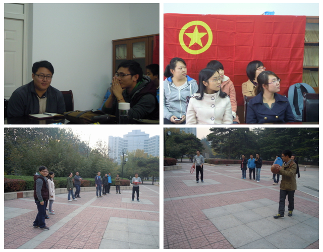 会议结束后,两个团支部一起在中心花园进行投篮活动,男女生全部参加。采用淘汰制的方法进行角逐。虽然活动简单,但是大家在这个过程中充分感受到了运动的魅力,加上男生爱看NBA等体育比赛,遇到篮球篮筐的时候忍不住模仿心目中偶像的经典动作,最后完美命中为本次运动会画下了完美句点。