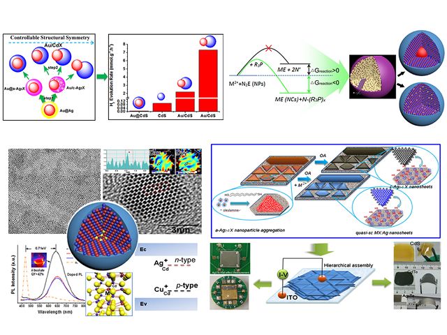 张加涛课题组一直在此领域开展研究,攻克了一个又一个难关。在前期工作的基础之上(Nature, 2010, 466, 91;Science, 2010, 327, 1634),在大晶格失配度金属/半导体异质纳米晶的精确调控及光催化性能方面,取得突破,发表在顶尖材料类杂志Adv. Mater. (IF="15.41)上;在此类量子点材料的取向连生组装、大面积成膜及柔性光伏、电子器件方面的研究发表在顶尖材料杂志NPG" Asia Materials(Nature子刊, IF="9.9)上;首次利用不同膦配体引发的离子交换反应实现此类异质结构的更多、更精细的结构及光学性质调控,相关研究成果被Angew." Chem. Int. Ed.(德国应用化学,化学领域顶级国际学术期刊,IF="11.3)接收发表。利用全新的离子交换反应方法,实现了半导体纳米晶中异价金属离子的掺杂、掺杂发光以及电子掺杂能级(p型、n型)的精确调控,这部分研究成果被顶尖材料类杂志Adv." Mater.(IF="15.41)接收发表。最近在光催化材料(产氢效率达到24mmol/g/h)、光热材料及生物应用等领域也有新的突破。Nature" 网站对我们的工作给予专题报道。