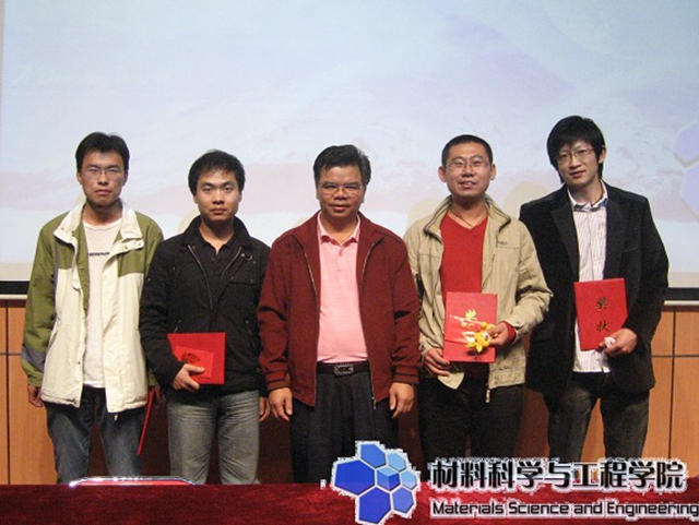 四位研究生喜获柏百顺优秀研究生奖学金并与蔡伟清(中)先生合影留念。