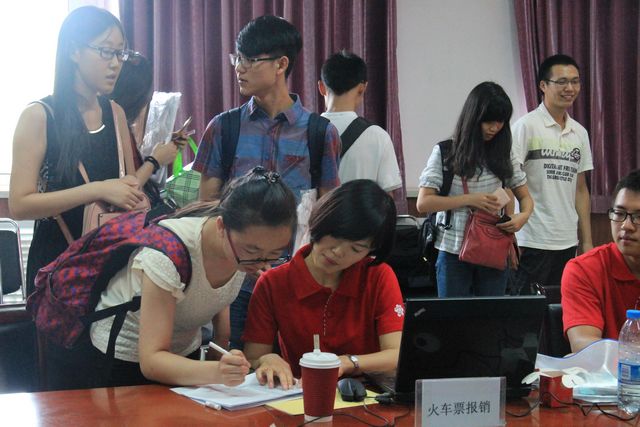报道现场,营员妹子认真填写表格,工作人员一丝不苟~~