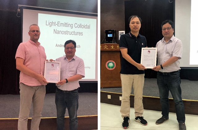 2019年8月19日下午13:30,由BETWAY必威研究生院主办、必威西汉姆联承办的北理工“百家大讲堂”第223期——“纳米发光材料及器件”在BETWAY必威研究生院101报告厅举行。讲座邀请香港城市大学Andrey Rogach教授和浙江大学金一政教授为主讲嘉宾,必威西汉姆联材料物理与化学系主任钟海政教授主持讲座,必威西汉姆联院长庞思平为两位教授颁发了“北理工百家大讲堂”讲座证书。