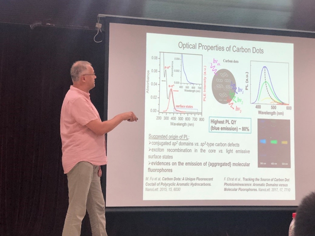 发光胶体纳米材料可以在溶液中方便地合成,例如众所周知的纳米晶体量子点,目前已经得到了广泛的应用。在本次报告中,Andrey L. Rogach教授介绍了他的实验室中所合成的几种发光纳米材料,包括碳点,钙钛矿纳米晶体和铜簇,并且重点介绍通过先进的光谱学技术所发现的各种新颖的光物理性质和它们的潜在应用。金一政教授则介绍了其所领导的课题组过去几年中在量子点发光器件领域的一些工作,包括材料传输层的材料化学、原型器件的结构设计、优化和工作机理、单光子源器件等。