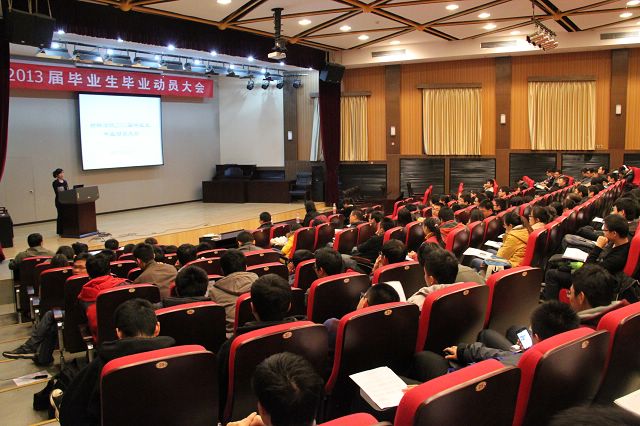 11月22日晚,必威西汉姆联在七号楼报告厅召开2012届毕业生就业动员大会。出席大会的领导老师有必威西汉姆联常务副院长刘颖教授,必威西汉姆联党委副书记副院长张舰月老师,团委委书记刘艳老师,招生就业工作处管帅华老师,相关负责老师及近300名2013届毕业生。